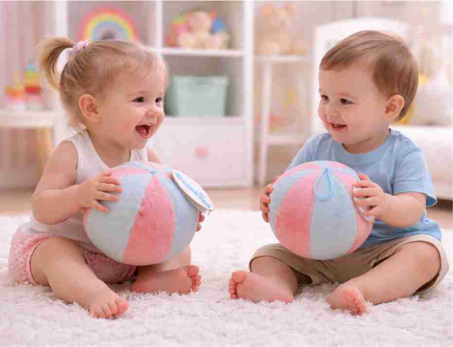 På toppen sidder en praktisk lille løkke, så bolden også kan hænges op – for eksempel i barnevognen, over puslepladsen eller som en sød detalje på børneværelset.