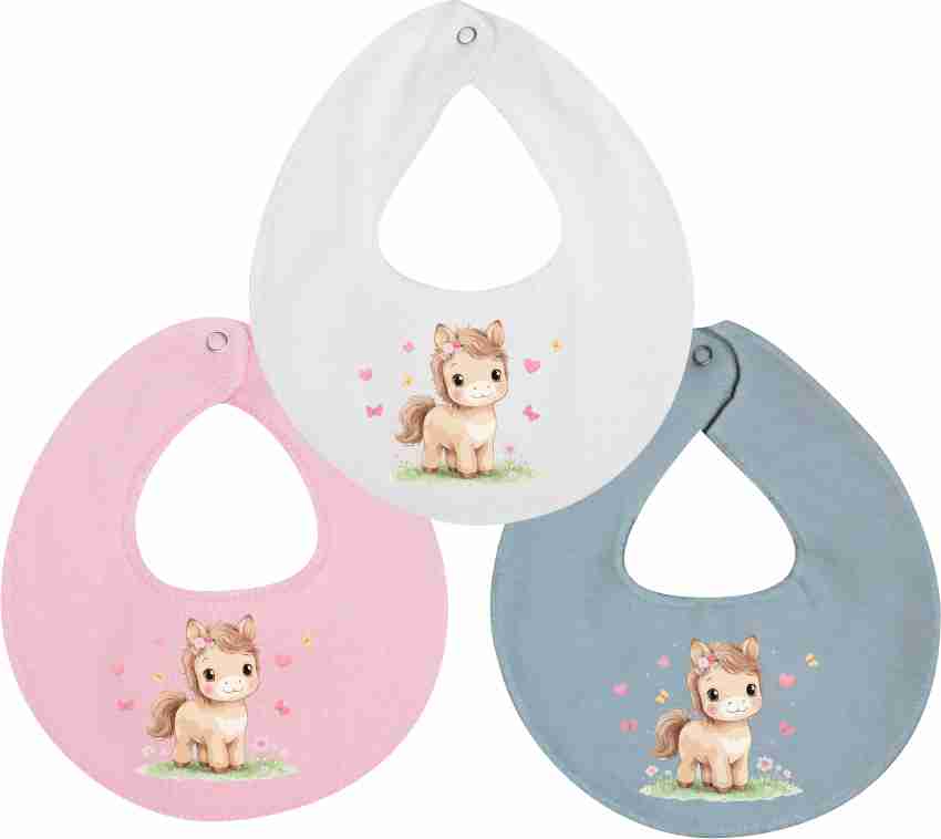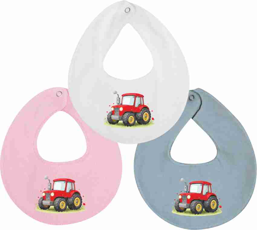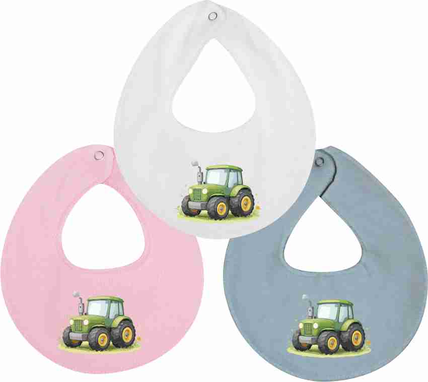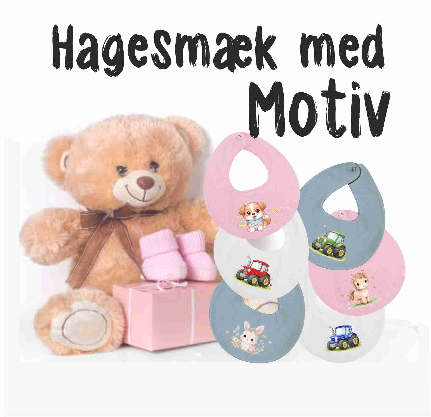 Gør måltiderne lidt sjovere med en personlig hagesmæk, der kan pyntes med et fint motiv af traktor, hest, hund eller kanin.