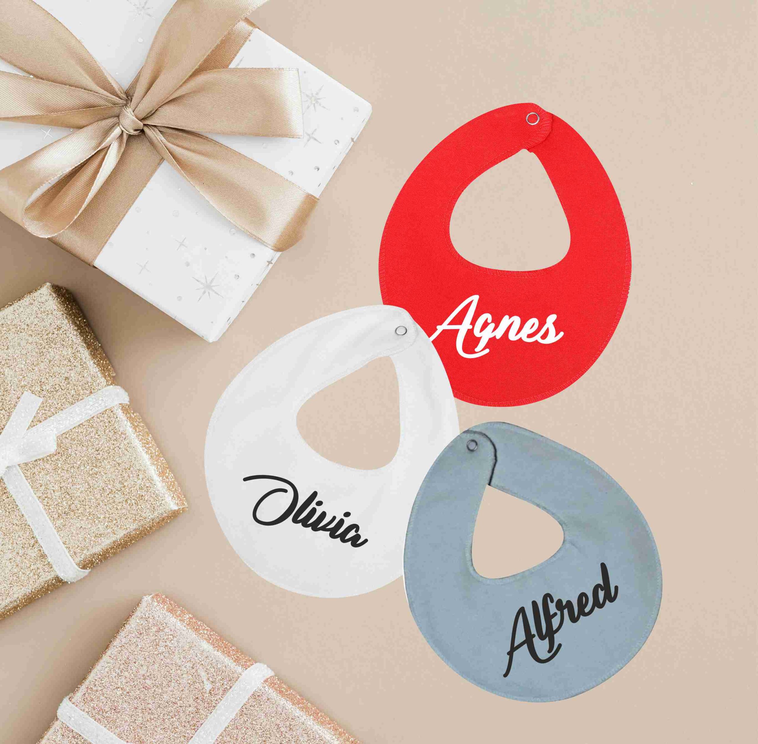 Personlig hagesmæk med barnets navn