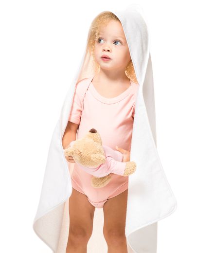Forkæl dit barn med det bedste – vores eksklusive babyhåndklæde er fremstillet af 100 % bomuld i en lækker kombination af frotté og velour. Den bløde og absorberende kvalitet (330 g/m²) sikrer en skånsom og behagelig tørreevne, perfekt efter badetid.